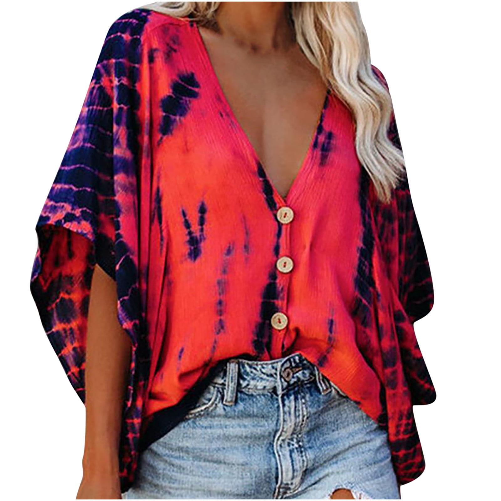Dillar Womens Fall Fashion 2022 T Shirt Casual Chiffon V Neck Bat Sleeve Tie Dye Printed Shirt Ladies Casual Chiffon V Neck Doll Sleeve Tie Dye Print Shirt Walmart Com
