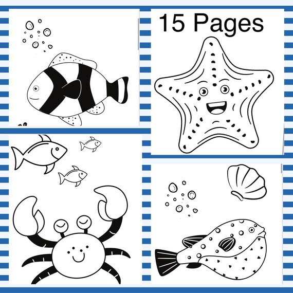 Sea Life 15 Printable Coloring Pages Instant Download Fun Etsy Singapore